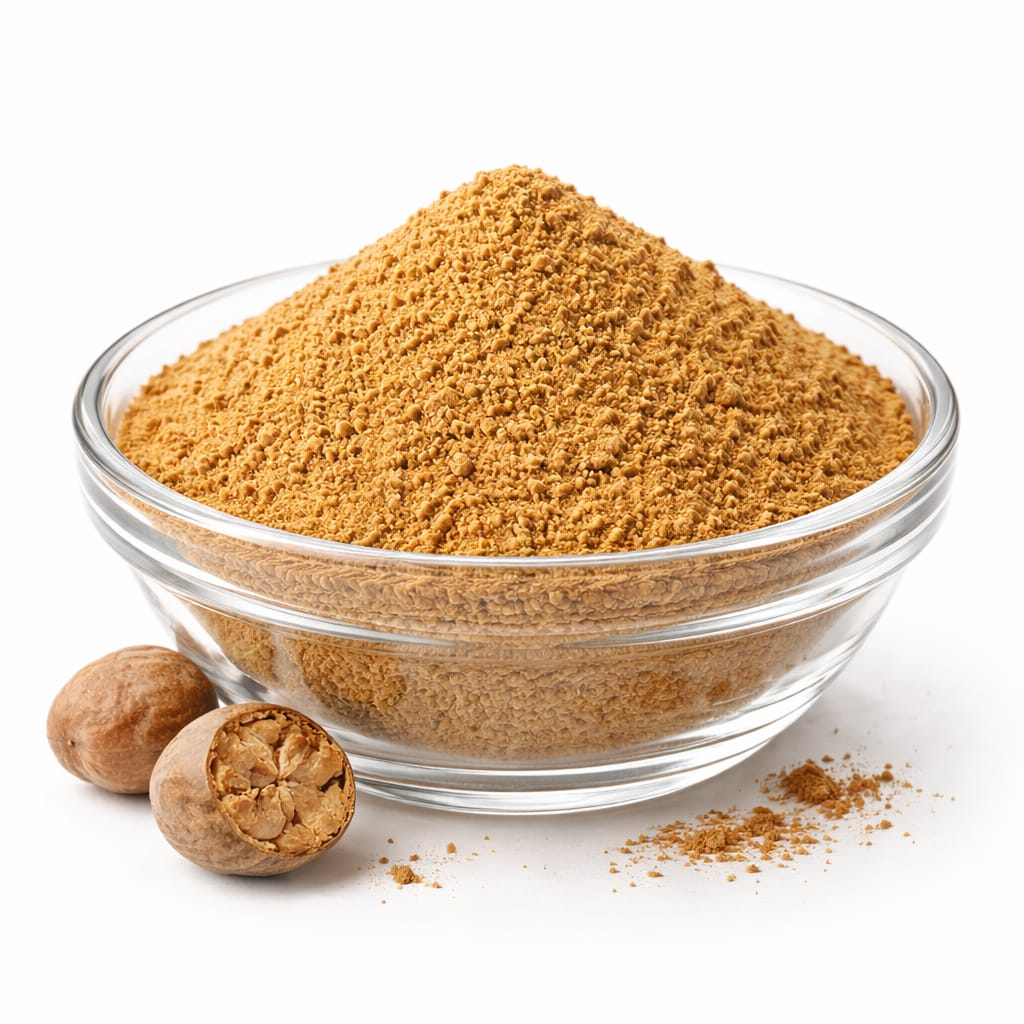 Finely ground nutmeg powder with warm, sweet and slightly spicy flavour.