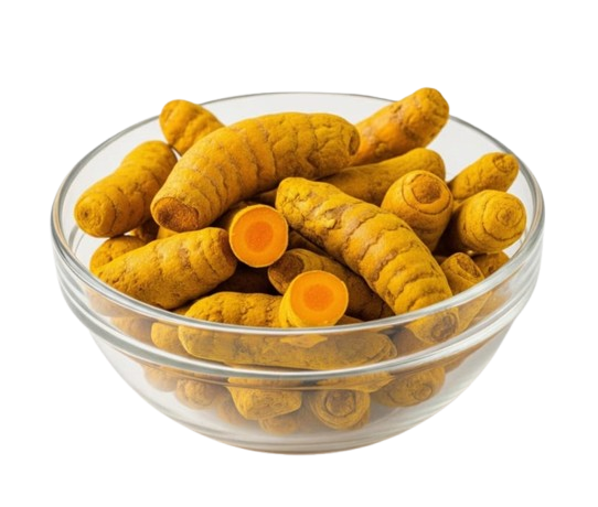 Whole dried turmeric roots with vibrant colour and natural curcumin.